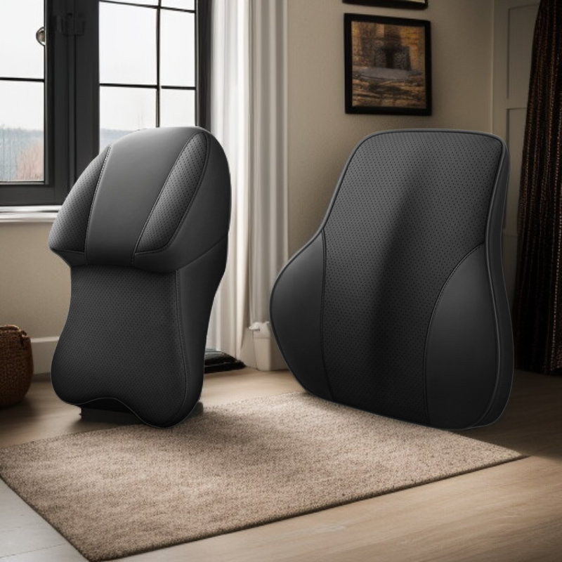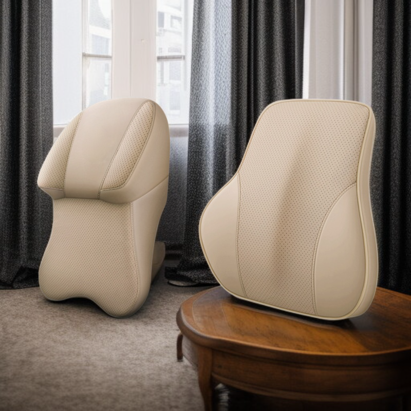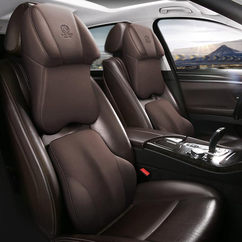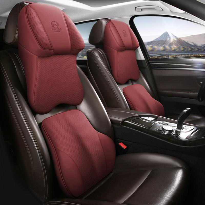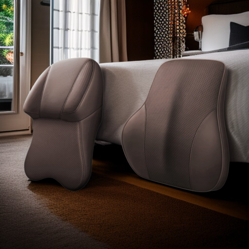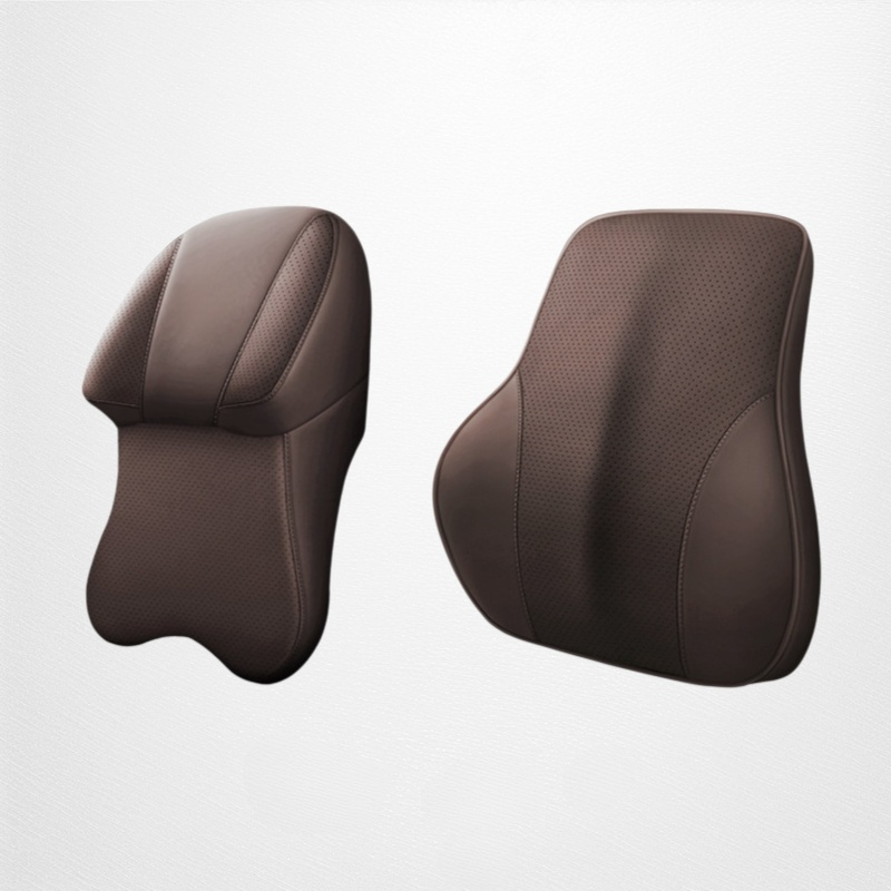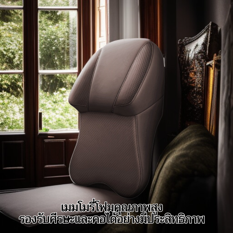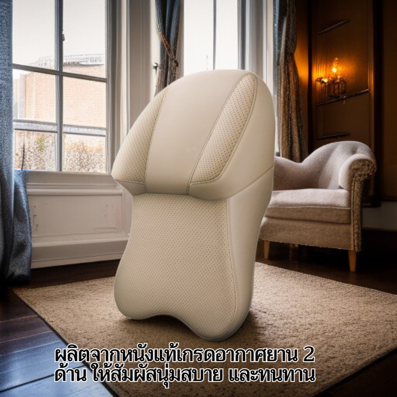 หมอนรองคอรถยนต์หนังแท้สองด้าน เกรดอากาศยาน เมมโมรี่โฟมสำหรับเบาะรถยนต์