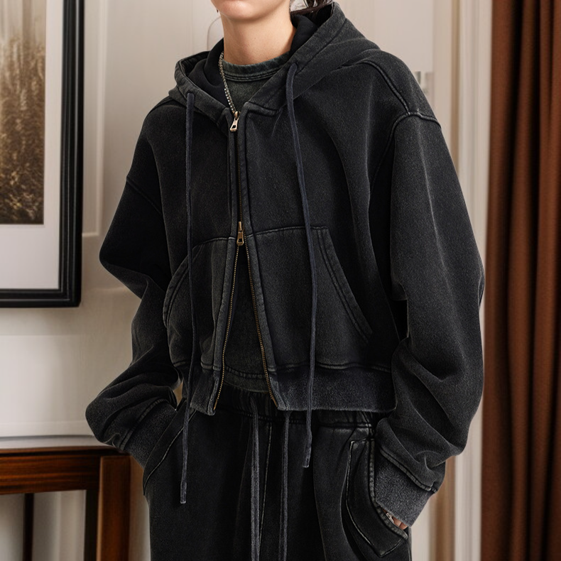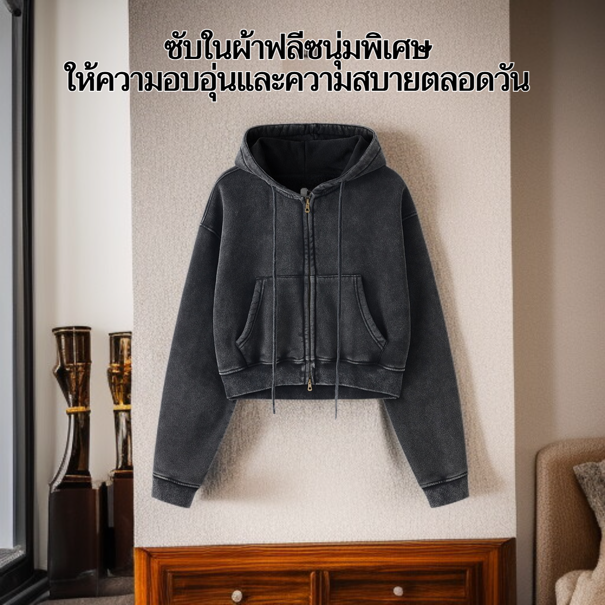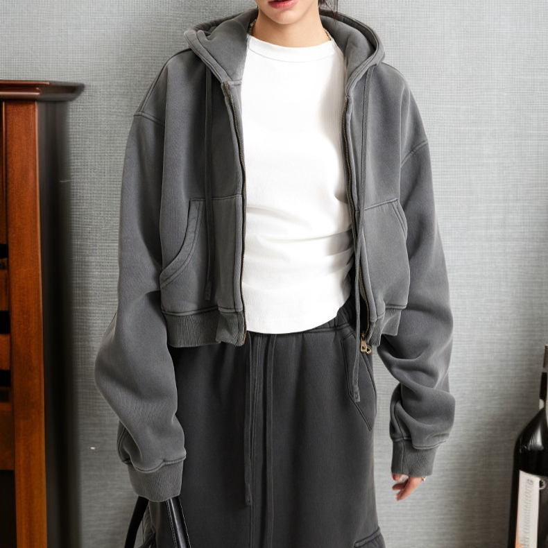 ● เสื้อฮู้ดวินเทจซิปหน้าทรงสั้น ดีไซน์เก๋สไตล์แฟชั่น ช่วยเสริมลุคให้ดูโดดเด่นในทุกโอกาส