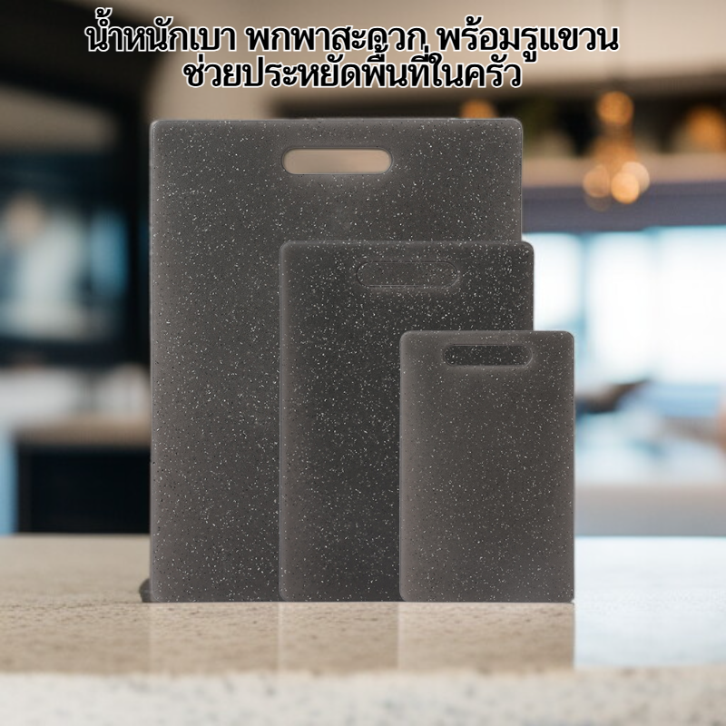 ● ชุดเขียงพลาสติก PP ลายหินอ่อน 3 ชิ้น แยกประเภทใช้งานเนื้อสัตว์ ผัก และผลไม้ ลดปัญหากลิ่นปะปนกันในครัว